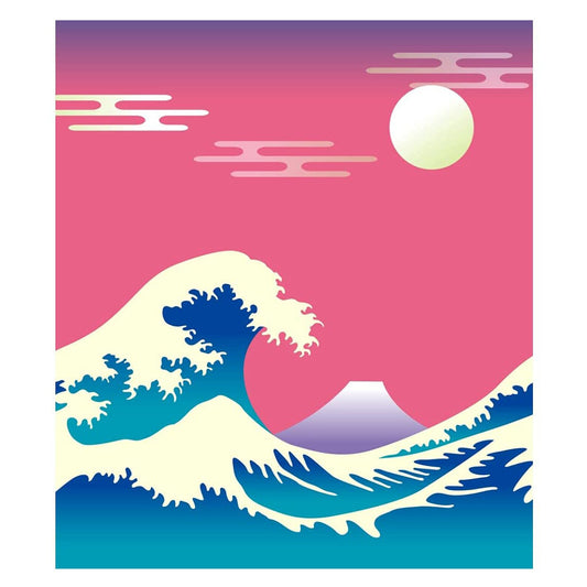 Printed Japanese Dishcloth - Waves with Mt. Fuji