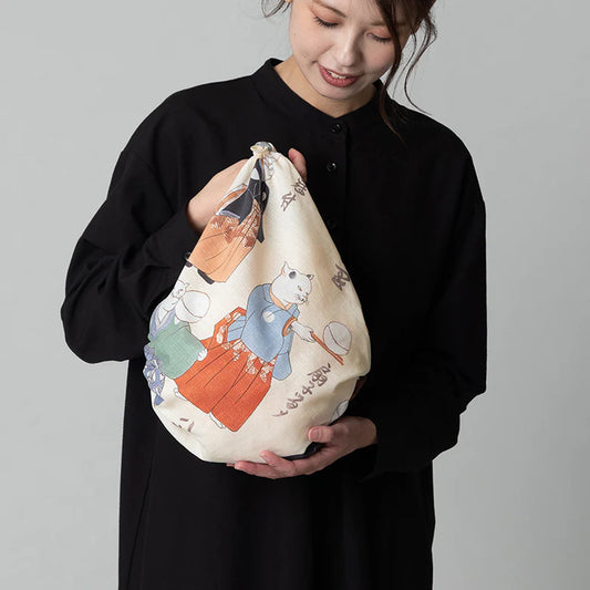 Furoshiki Patchin Bag M Organic - Cat Juggling Balls Cream