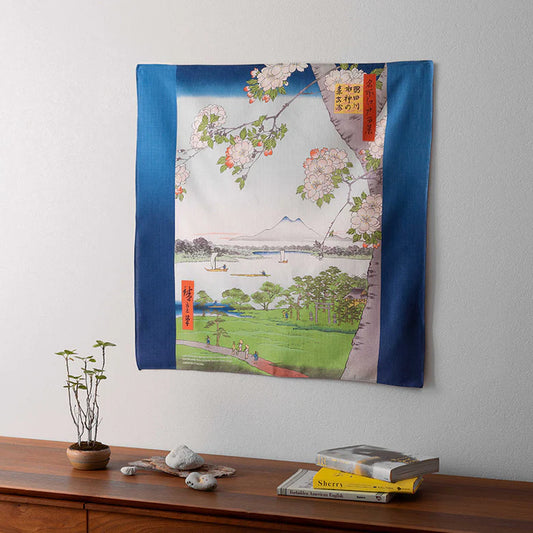 Furoshiki Ukiyo-e - Suijin Shrine Massaki Sumidagawa River Navy Blue 48cm