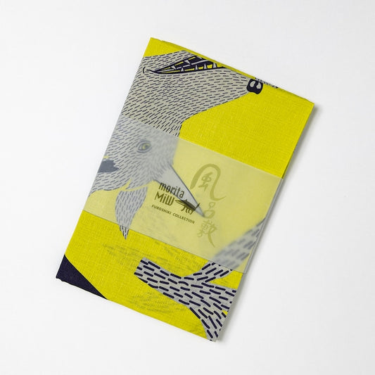 Furoshiki Organic - Kata Kata Musubi Bear & Bird Yellow 50cm