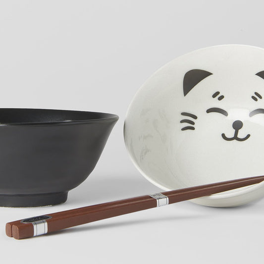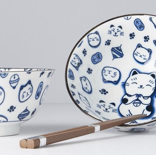 Blue Maneki Cat 2 piece boxed bowl set 15cm