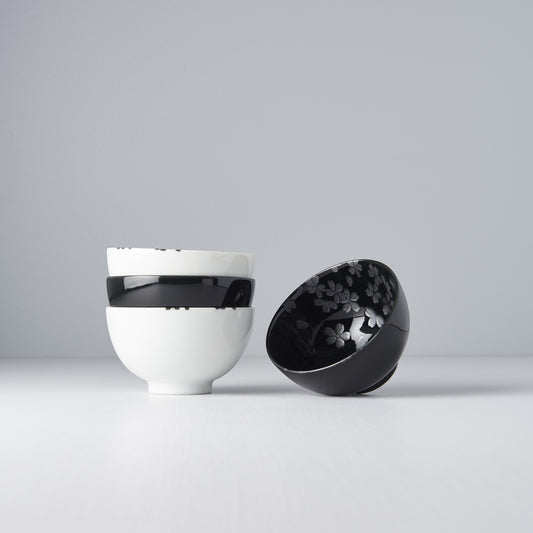 Black & white sakura 4 piece boxed bowl set 11.5cm