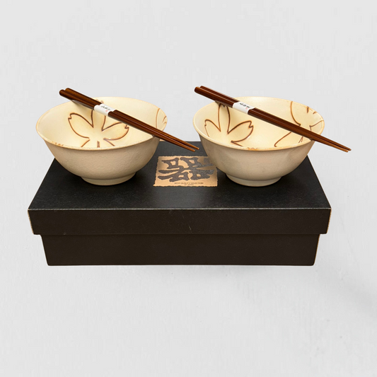 Cream Stylised Flower Design 2 piece boxed bowl set 15cm