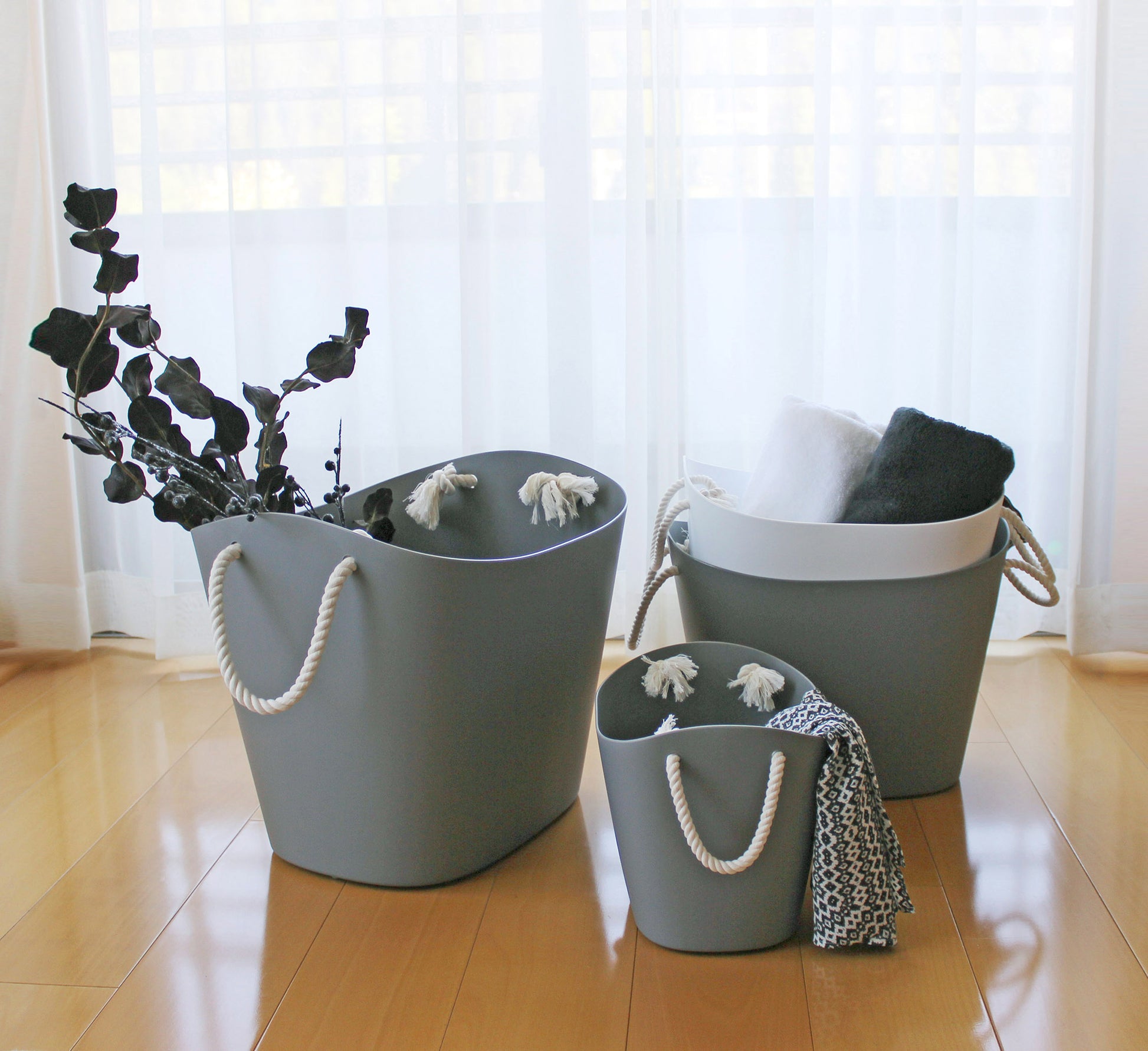 With its spacious 19L size, this basket is ideal as a laundry basket for clothing and towels, a toy storage solution, or a versatile utility organiser for blankets, cleaning supplies, and daily essentials. The flexible polyethylene body is lightweight yet durable, while the soft cotton rope handles allow for comfortable carrying between rooms.