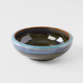 Code: C8157Thick edged bowl with a blue glaze on its outside and dark green inner glaze.