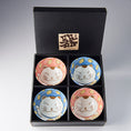 Red and blue Maneki cat 2 piece boxed bowl set 15cm