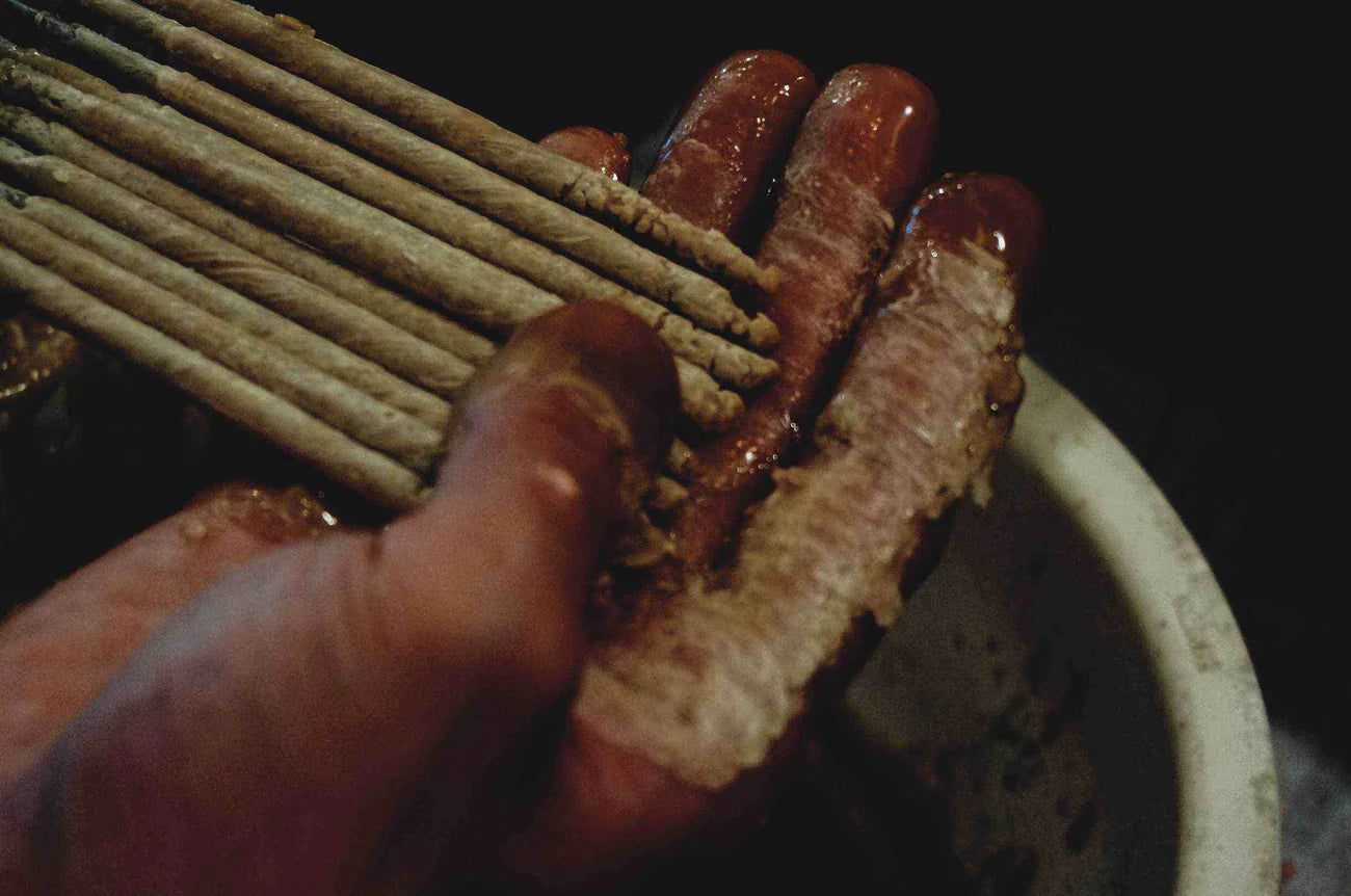 Code: HazePcharcoalEach layer of wax is applied by hand to form a traditional Warosoku candle.