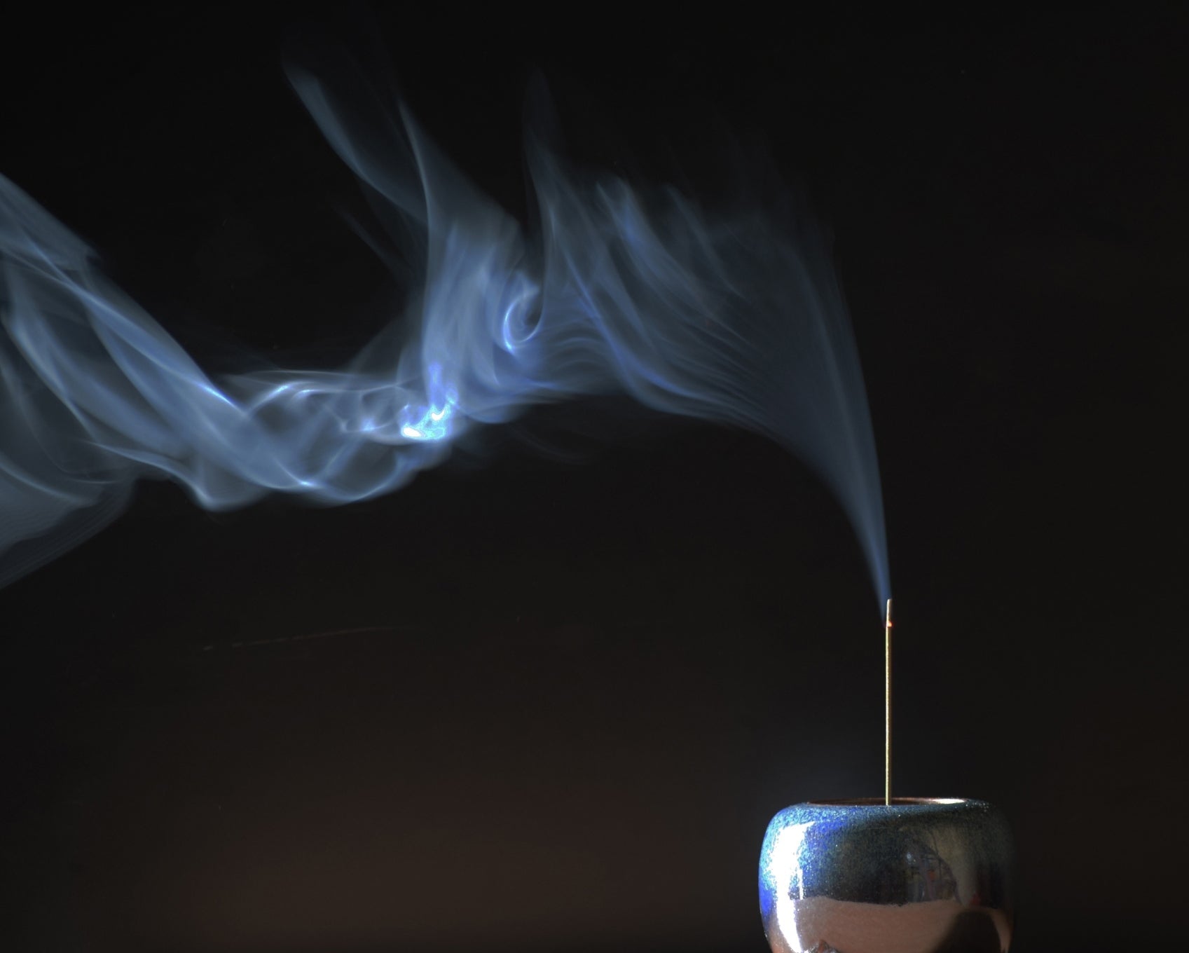 Fill a heat-safe cup or incense holder with ash and place a lit incense stick upright or resting on the surface. The ash can be reused multiple times.