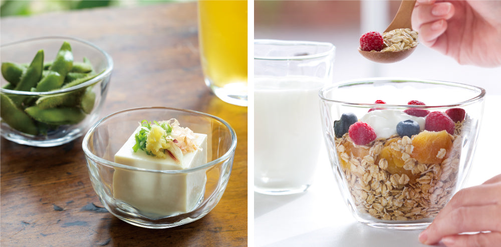 "Tebineri" is a pottery technique that does not use a potter's wheel and creates shapes entirely by hand. The shape created with the tebineri technique is faithfully transferred to glass, resulting in a vessel with a soft expression. It goes well with pottery and Japanese vessels, and is thick and durable, making it ideal for everyday use.