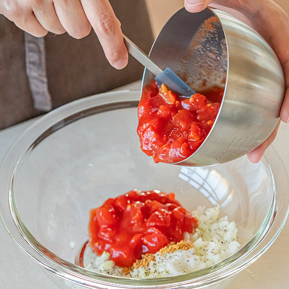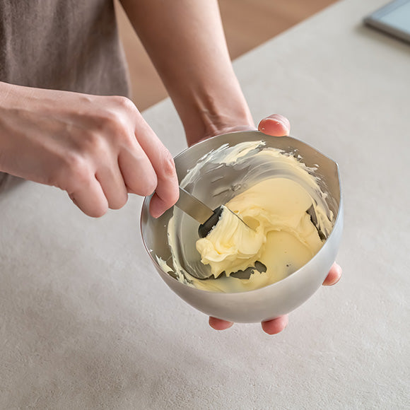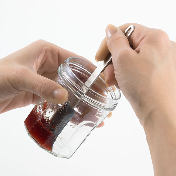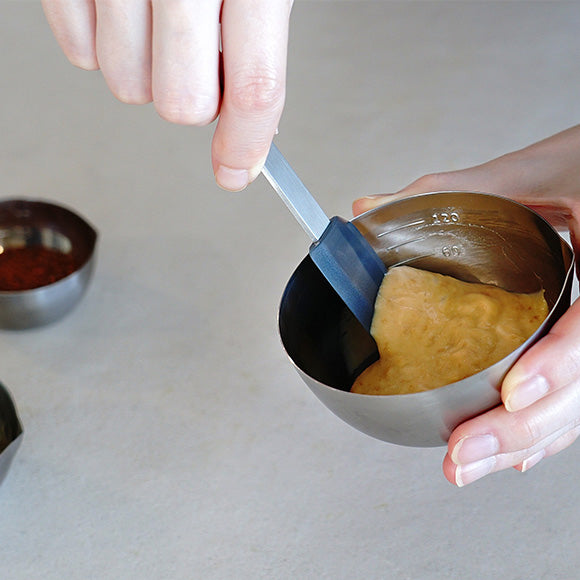 The spatula neatly scrapes off seasonings and ingredients out of the bowls, jars and pans. Available in three sizes.
