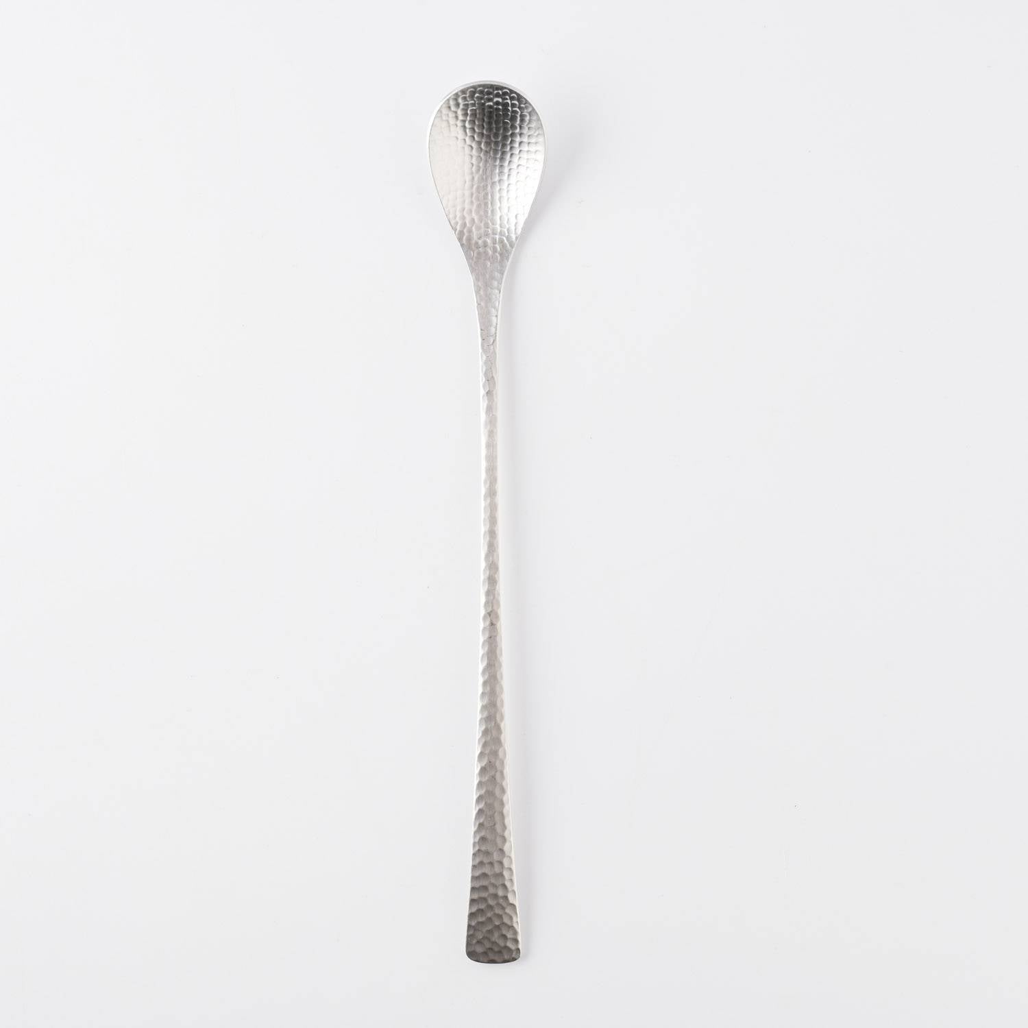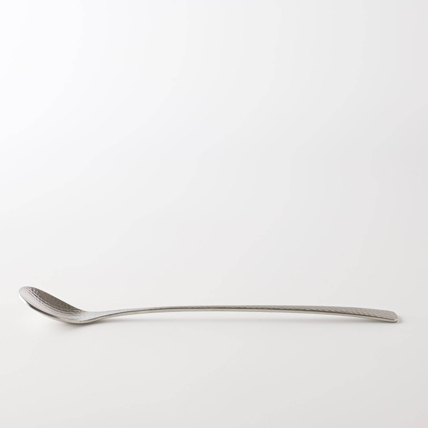 This long, slender soda spoon is designed for effortless stirring, making it ideal for sodas, cocktails, floats, and tall glasses. It also works comfortably as a muddler or drink stirrer, with a balanced weight that feels stable and refined in the hand. The hammered surface adds a subtle touch of texture and quiet luxury, elevating everyday drinkware.