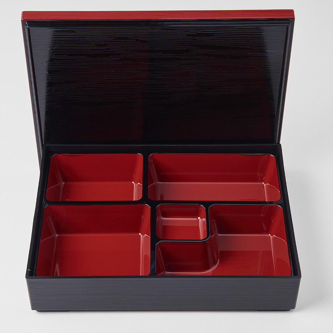 Black outer with red inner 5 section obento 27cm