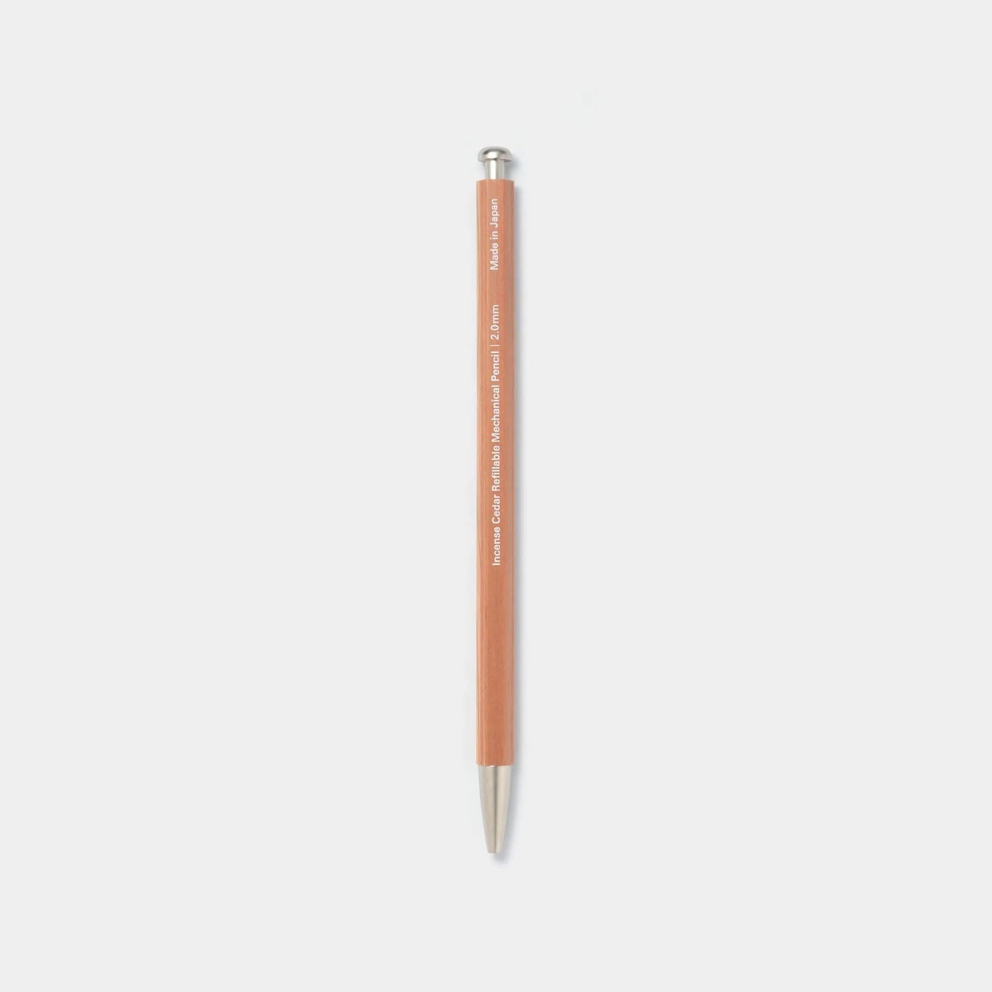 A mechanical pencil and eraser duo that takes us back to our childhood. The mechanical pencil feels and writes just like a standard pencil with its 2mm lead and wood casing, only made more practical by the addition of a push button. A lead pointer is included for sharpening. The unique eraser was developed by a Japanese manufacturer specializing in erasers for over 100 years. A stationery set for grown-ups that guarantees both quality and a sense of fun.