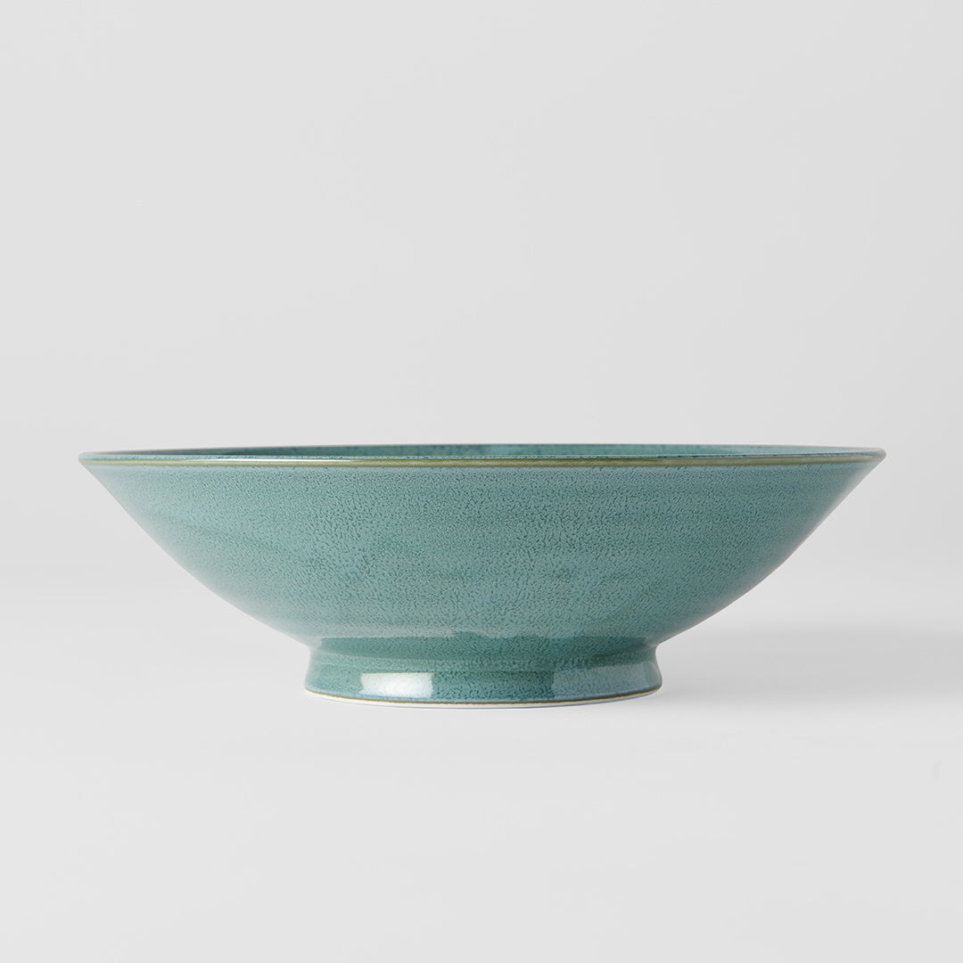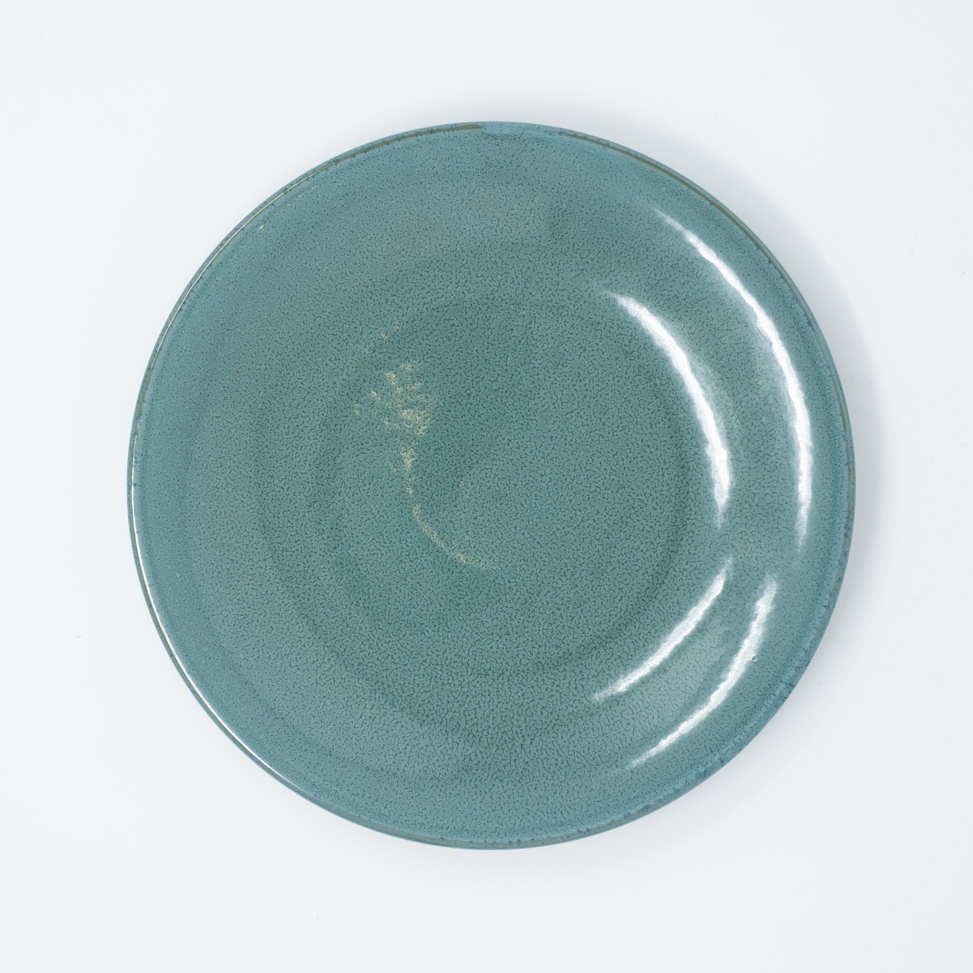 The Peacock glaze features a bold teal blended with a rich, iridescent blue. Each piece has a unique finely dappled pattern determined by its position in the kiln during the firing process.