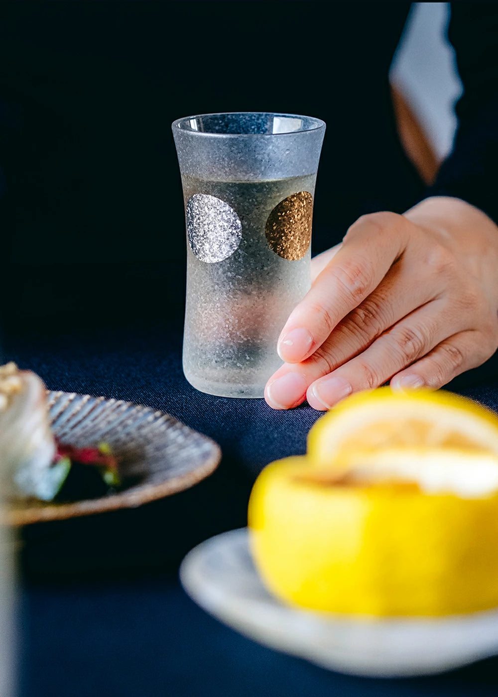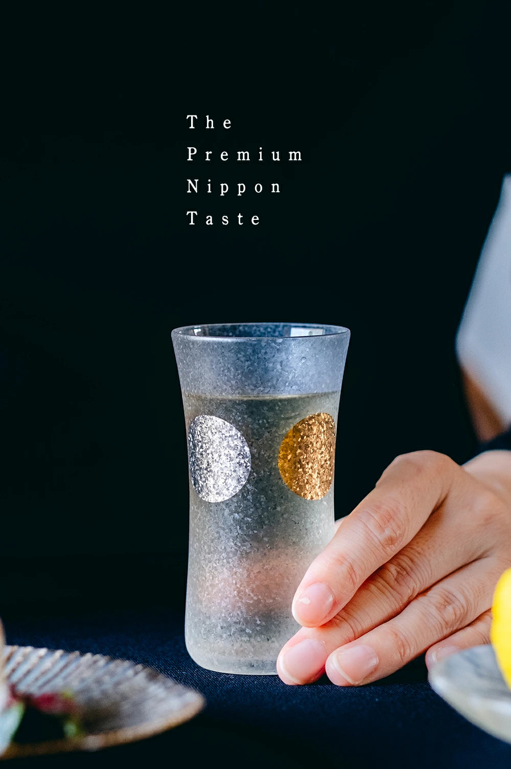 Adorned with Japan’s traditional “Jitsu Getsu” (Sun and Moon) motif, this elegant glass series captures the harmony of light and shadow.
