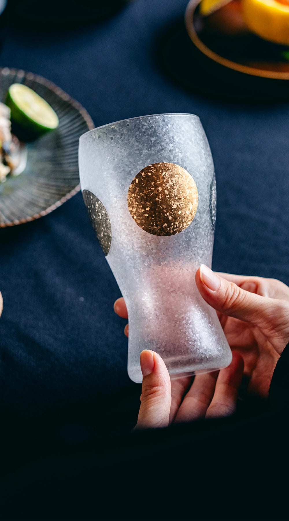 Adorned with Japan’s traditional “Jitsu Getsu” (Sun and Moon) motif, this elegant glass series captures the harmony of light and shadow.