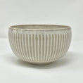 The Alabaster range is made of high-quality porcelain and features a simple line pattern on a natural white glaze