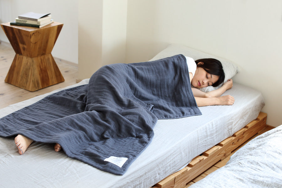 The "2.5-ply gauze" is made using 20-count cotton thread and a special gauze weave that halves the middle fabric of triple-ply gauze. The irregular weaving method gives it a fluffy, soft, and unique feel. It is not bulky or stiff while maintaining high absorbency, and dries quickly.