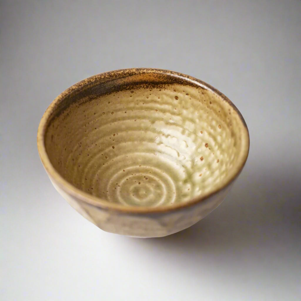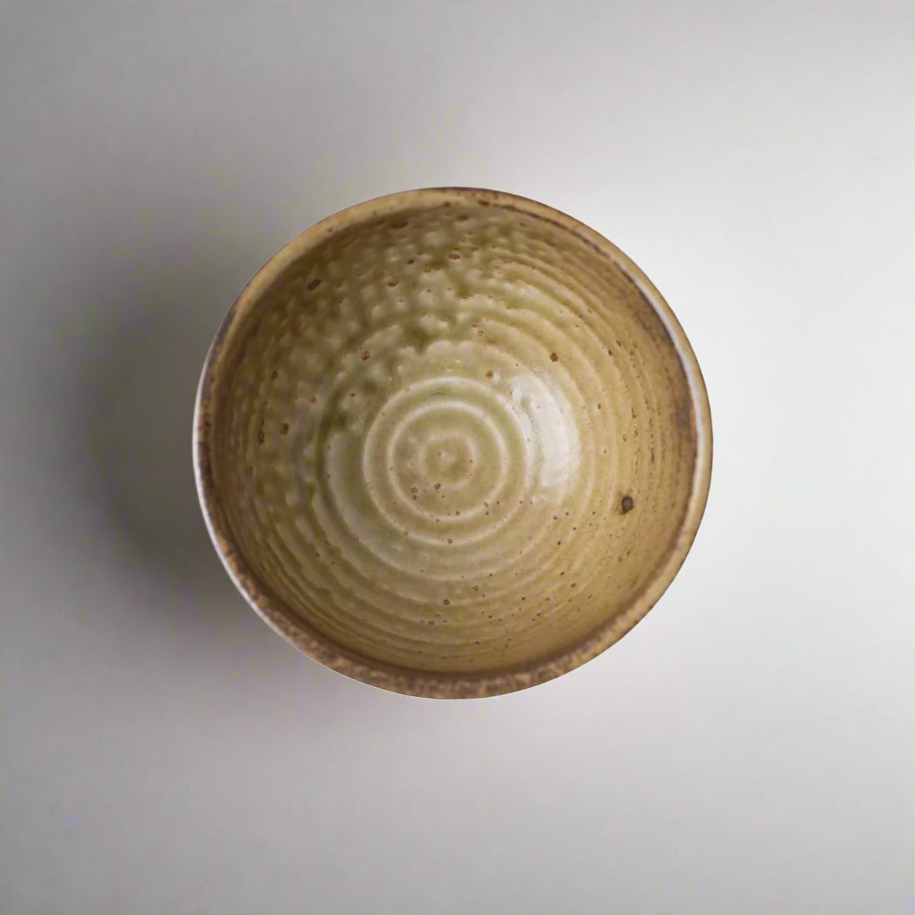 Code: C0908Japanese rice or soup bowl in delicate hay tones, a traditional Japanese style of bowl with a natural textured finish