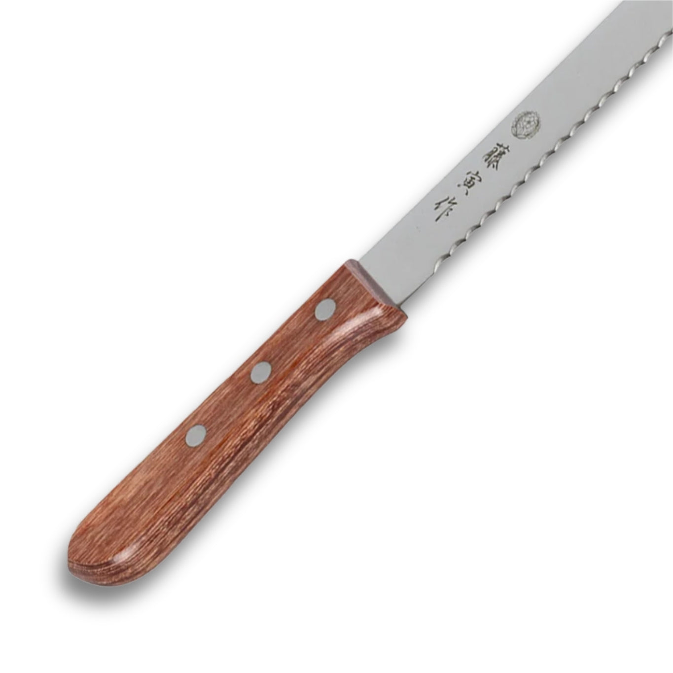 Crafted from anti-rust stainless steel with a natural wooden handle, the Tojiro Fujitora Bread Knife delivers smooth, effortless slicing without crushing or deforming the bread.