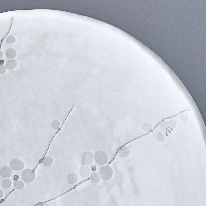 This White Blossom Pasta Bowl features a Sakura blossom motif on a powder white gloss glaze. The cherry blossom is a special flower for the people of Japan representing renewal and the ephemeral nature of life.