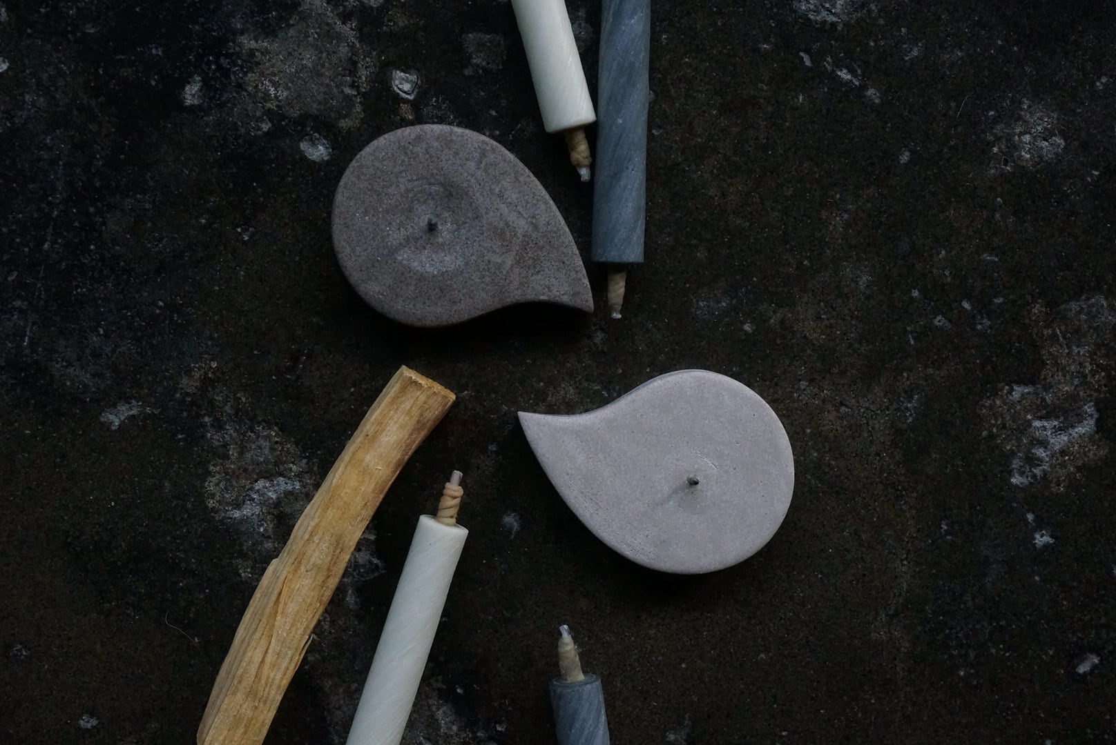 Each candle is made from haze wax blended with hemp charcoal (black) and Ōshio sea salt (white). In Shinto tradition, salt has long been used for purification, while hemp is revered as a sacred plant for protection and cleansing.