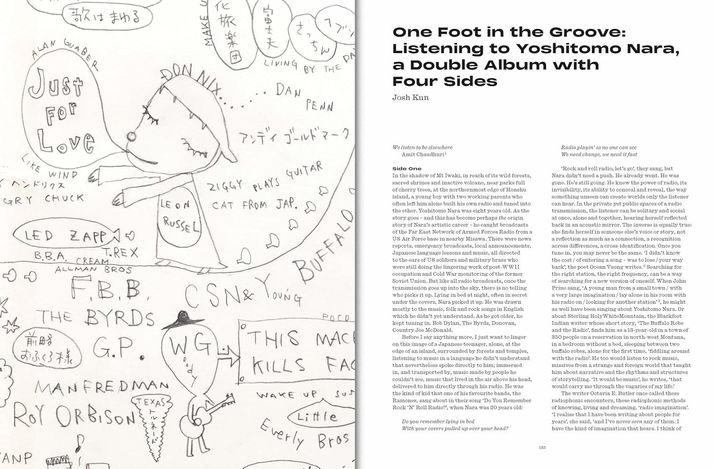 Memories as a continuous flow runs through Nara’s work. This is in parallel with the inspiration he takes from popular music, which he has been listening to since childhood – folk songs by American singer-songwriters featuring antiwar messages, melancholic blues and, later, glam rock, punk and new wave.