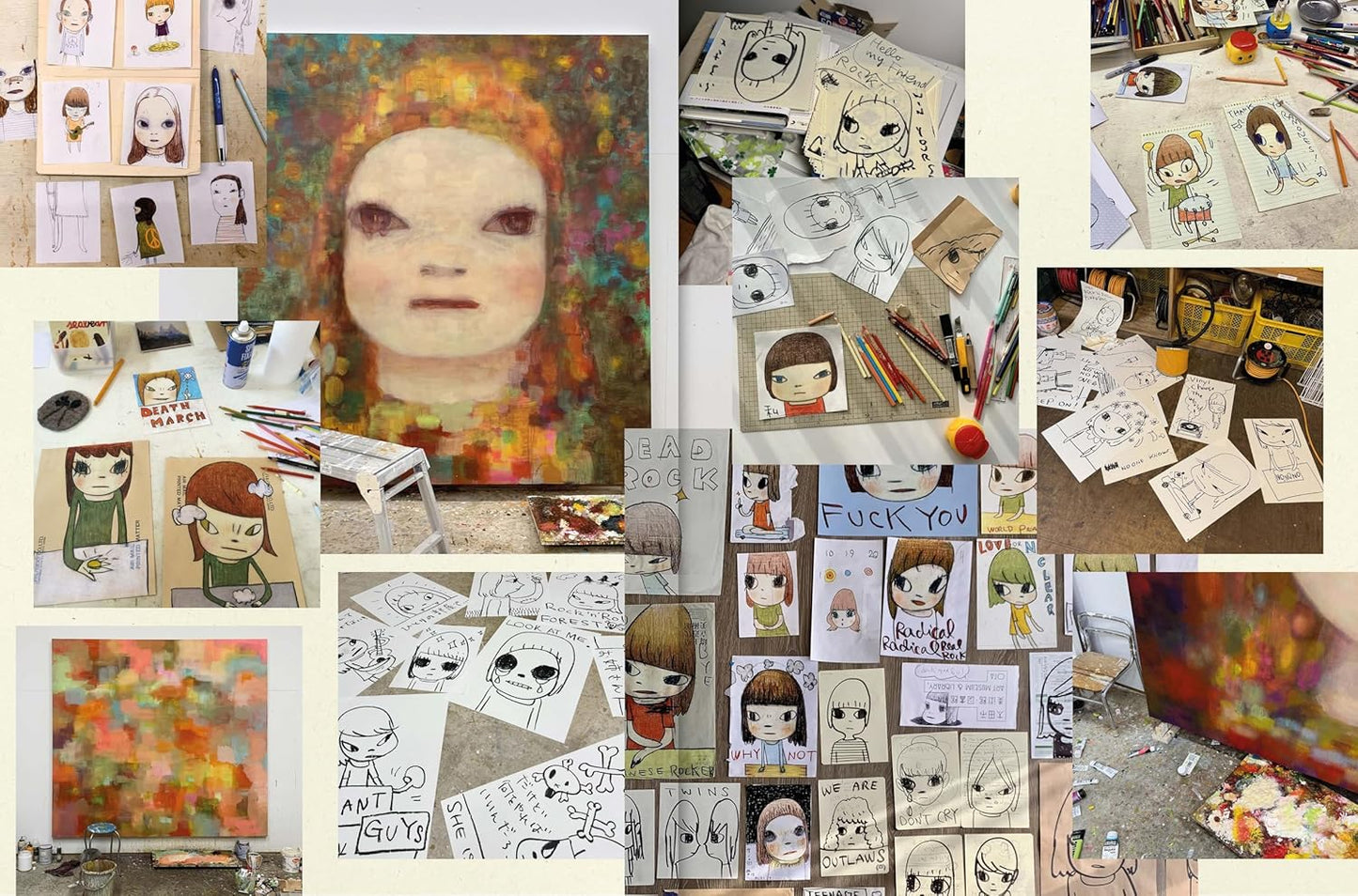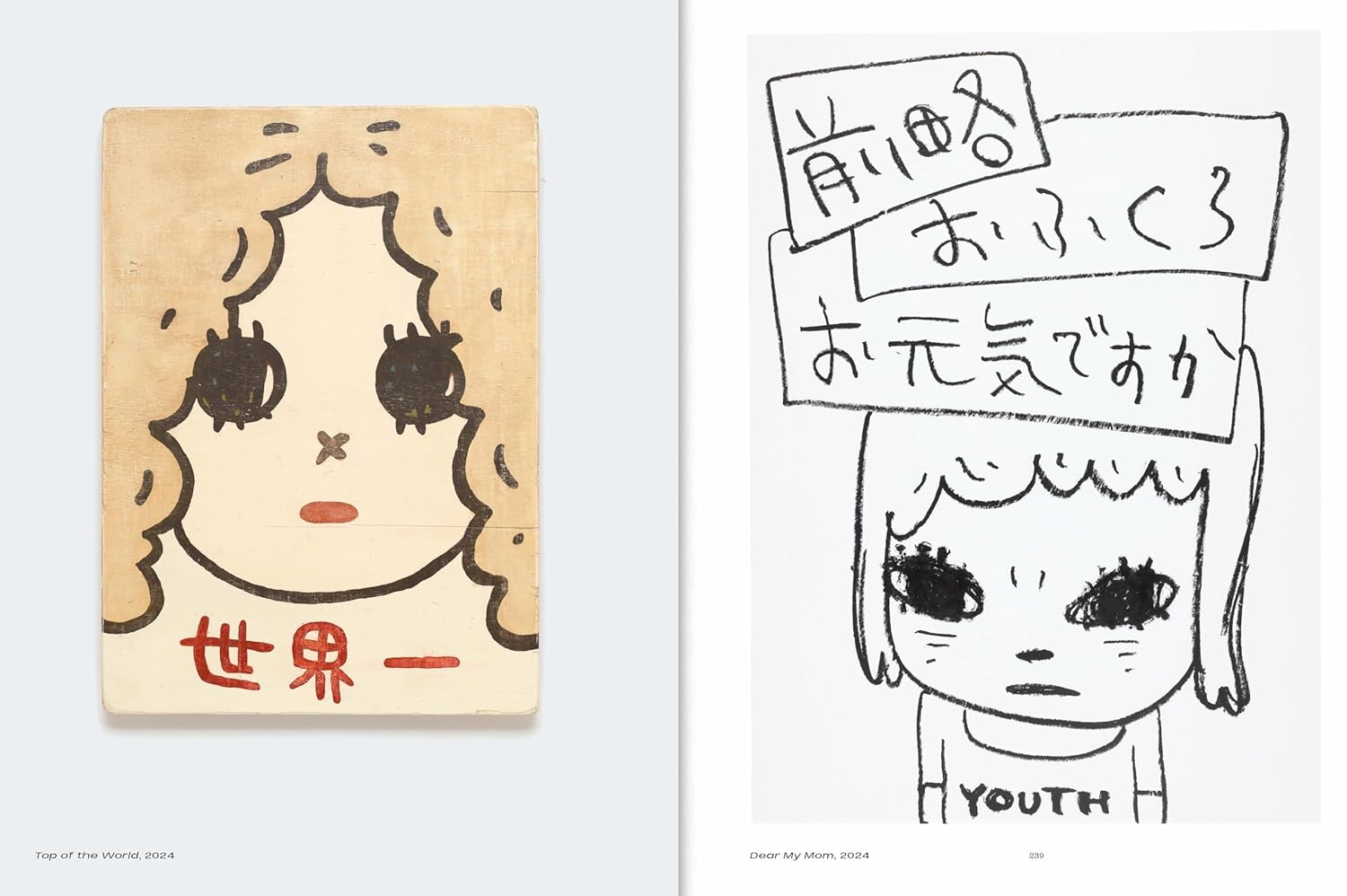 Yoshitomo Nara primarily identifies as a painter while working across a wide range of mediums, such as drawing, collage, sculpture, installation and materials including found objects, cardboard, wood, plaster, textile, ceramic and fibreglass.